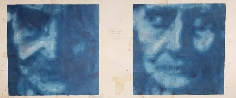 Aquarelle, encre de Chine, toile intissé montée sur châssis 230x88cm